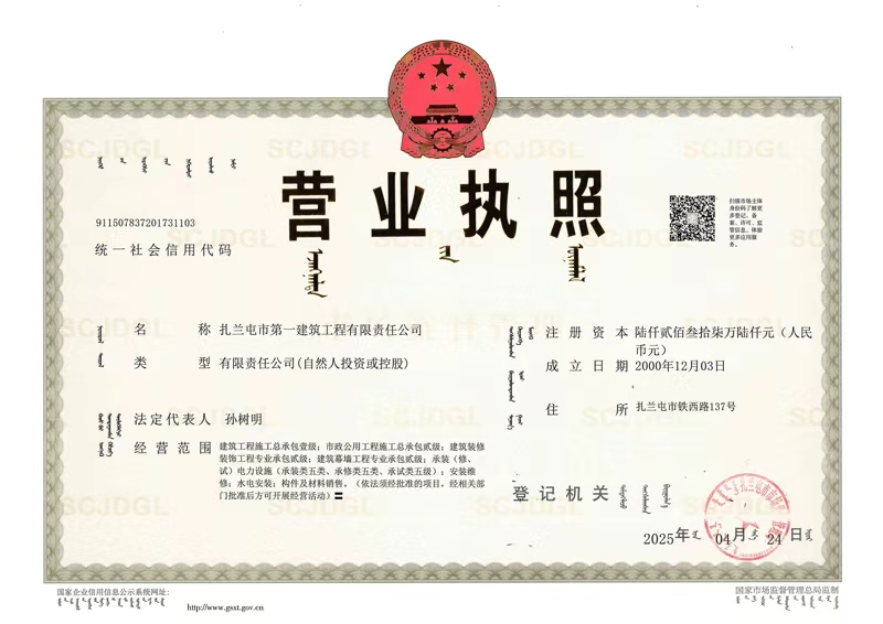 公司的前身是扎蘭屯市第一建筑工程公司,始建于1958年3月1日。2000年12月轉(zhuǎn)制為有限責(zé)任公司,是房屋建筑工程施工總承包壹級、房地產(chǎn)開發(fā)貳級、市政公用工程施工總承包貳級、商品砼攪拌站、建筑裝修裝飾工程專業(yè)承包貳級、起重設(shè)備安裝工程專業(yè)承包貳級企業(yè)。具有建筑、房地產(chǎn)開發(fā)、市政工程、商品砼、裝修裝飾等工程的綜合施工能力。公司有五十余年的建筑施工管理經(jīng)驗。